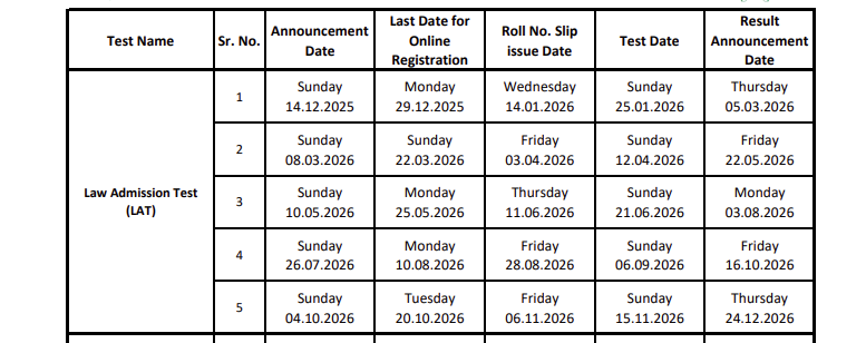 In the image below, I have given a complete schedule of the LAT exam in 2026 as per HEC.